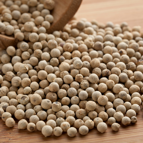White pepper is a spice made from the ripe seeds of the Piper nigrum plant, with the outer black skin removed through soaking and rubbing. It has a milder, less pungent flavor compared to black pepper, offering a subtle heat and slightly earthy taste. White pepper is often used in light-colored dishes like white sauces, mashed potatoes, and soups where the appearance of black specks is undesirable. Common in Asian and European cuisines, it adds a gentle warmth and aroma without overpowering other flavors. Like black pepper, white pepper contains piperine and is appreciated for its digestive and antioxidant properties.