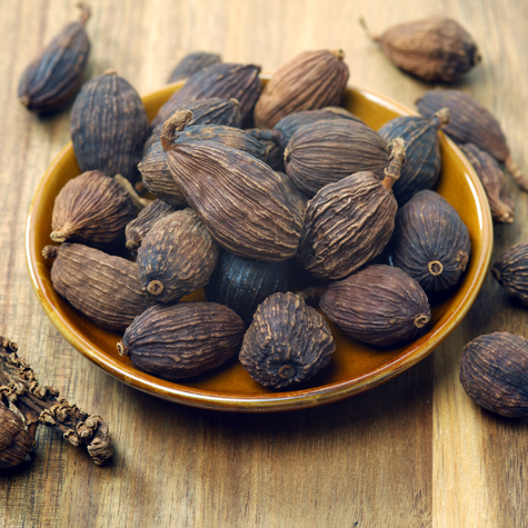 Black cardamom is a bold, smoky spice made from the dried seed pods of the Amomum subulatum plant. Unlike its green counterpart, black cardamom has a strong, earthy flavor with hints of camphor and a distinctive smoky aroma due to the traditional drying process over open flames. It is commonly used in Indian, Nepalese, and Chinese cuisines, especially in savory dishes like stews, biryanis, and meat curries, where it adds depth and warmth. Besides its rich flavor, black cardamom is also valued in traditional medicine for its digestive benefits and respiratory relief. Its robust taste makes it an essential spice for hearty and aromatic dishes.